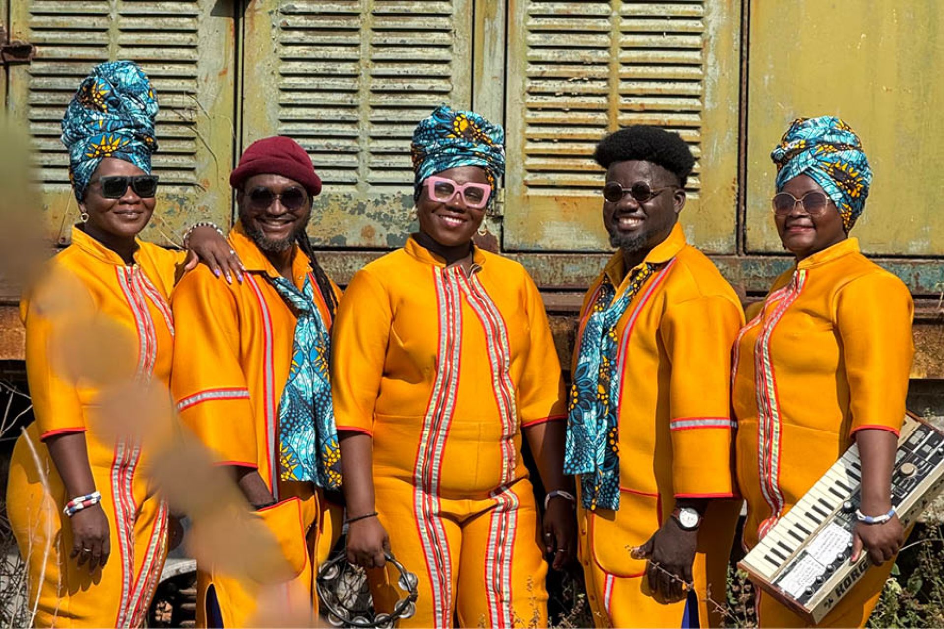 La tradition vaudou rencontre la soul taillée pour le dancefloor. Elles sont cinq, comme les doigts d’une main. Une main prête à se refermer en un poing pour frapper avec puissance, ou à caresser doucement la terre avec groove et grâce. Porté par des polyrythmies complexes et des voix puissantes, le groupe crée une expérience à la fois brute et transcendante. Sur scène, Nana Benz du Togo déchaîne une énergie ancestrale qui met le public en transe.